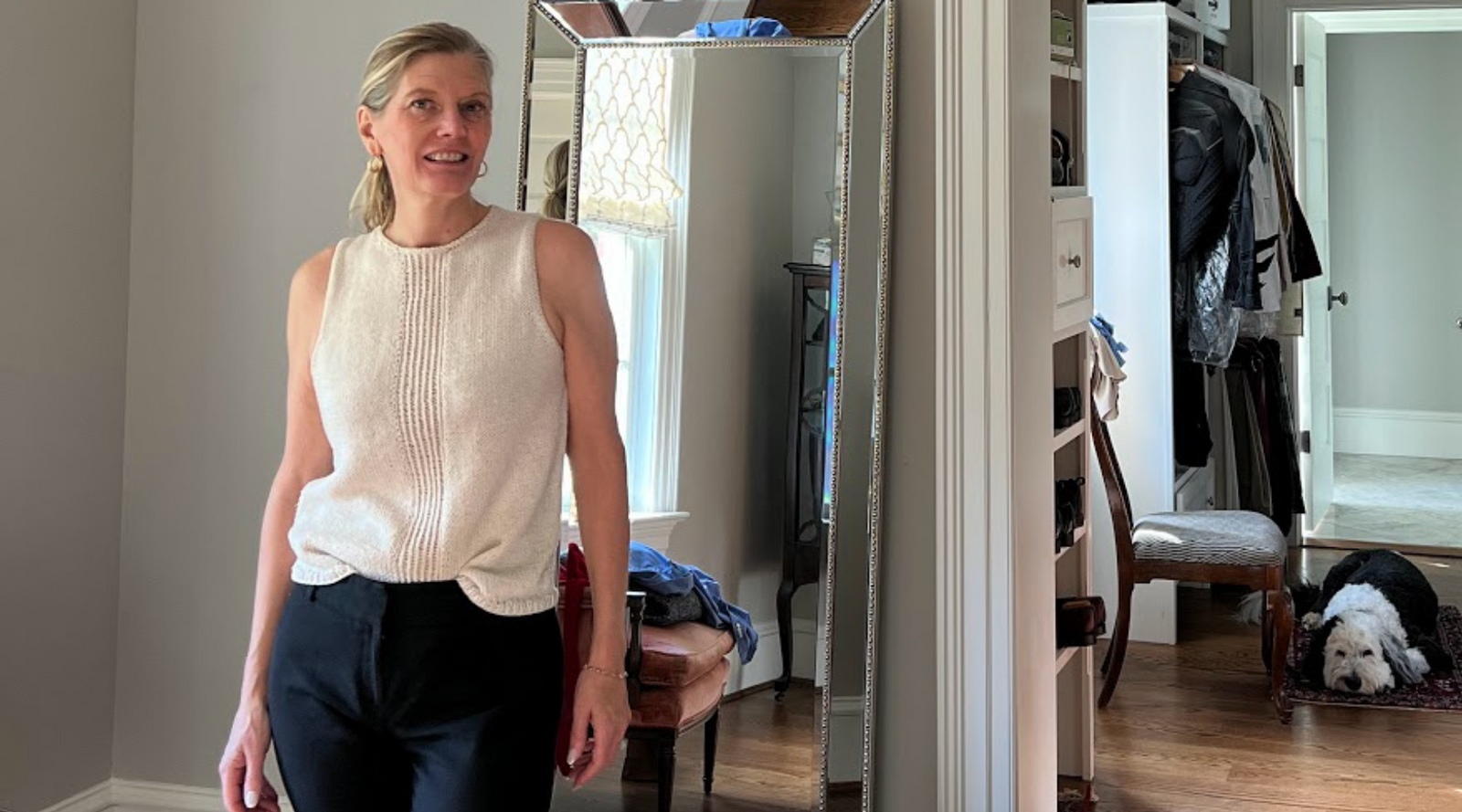 At a trunk show, the yarn company or designer sends a whole big box, or trunk, of knitted samples for you to see and try on. The garments are typically in the shop for at least 10 days and sometimes as long as 2 weeks.