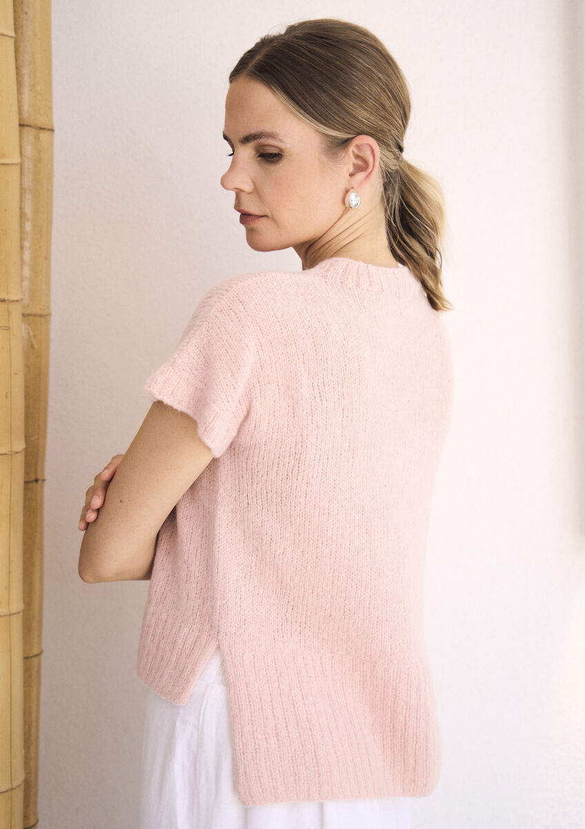 Meet the Mode Hanne—a graceful V-neck sweater designed for those in-between seasons when you crave lightweight layering. Knitted from cloud-soft MODE Alpaca Haze, this piece wraps you in gentle warmth without heaviness, making it ideal as winter melts into spring. The short sleeves bring an airy, refreshing quality perfect for mild days, while the relaxed silhouette ensures effortless comfort whether you're layering or going solo. The delicate texture adds subtle sophistication to any outfit, from casual basics to more refined looks. Embrace the season's transition with a sweater that feels as beautiful as it performs.